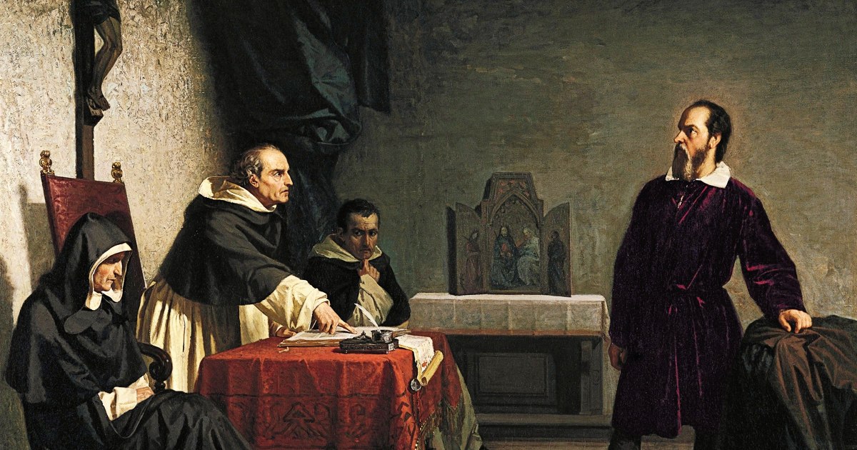 Nel 1612, il padre Niccolò Lorini condannò l'eresia copernicana pubblicamente a Firenze. Galileo dovette difendere la libertà della ricerca scientifica e sé stesso. Si dedicò all'analisi della Bibbia per chiarire il rapporto tra scienza e fede. Sostenne che tra scienza e fede non c'è contraddizione, ma separazione di competenze. Infatti la Bibbia insegna verità etiche e religiose, mentre la scienza indaga la natura (come si va in cielo ≠ com'è fatto il cielo). Nel 1616, il Sant'Uffizio condannò l'eliocentrismo come eretico, e il cardinale Bellarmino intimò a Galileo di abbandonare l'ipotesi copernicana. Con il supporto del Papa Urbano VIII, Galileo godette di un periodo di tranquillità e scrisse il "Dialogo sopra i due massimi sistemi del mondo," un'opera in lingua volgare e in forma dialogica. È stata concepita per essere comprensibile a un vasto pubblico e ha l'obiettivo di difendere il sistema astronomico copernicano, anche se scritta con cautela. Nel dialogo, i tre protagonisti sono Simplicio, un rappresentante del pensiero aristotelico ritratto come semplice e ingenuo; Sagredo, un uomo di scienza che svolge il ruolo di moderatore imparziale e onesto, riconoscendo facilmente la validità del sistema copernicano; e Salviati, un assertore del sistema copernicano, noto per la sua acutezza e chiarezza, e dietro al quale si cela l'autore, Galileo Galilei.. L'opera fu censurata per quanto ritenuta blasfema e inaccettabile, e Galileo dovette ritrattare. Condannato al carcere, trascorse gli ultimi anni a casa sua ad Arcetri, dove morì nel 1642.
